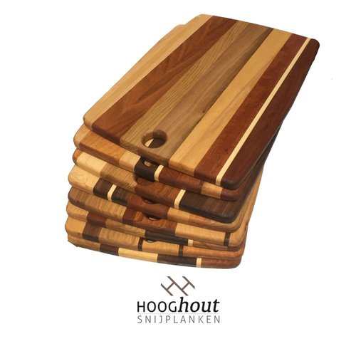 Hooghout Snijplanken, dit zijn snijplanken en seveerplanken van verschillende soorten hout. Noten, Jatoba, Eiken, Esdoorn, Maple handgemaakt, iedere snijplank een ander design. vanaf € 19,95